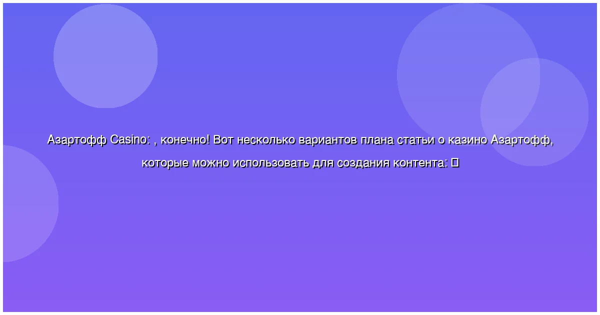 , конечно! Вот несколько вариантов плана статьи о казино Азартофф, которые можно использовать для создания контента: